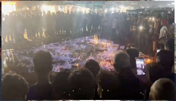 ট্রাকভর্তি চোলাই মদ আগুনে পোড়ালো জনতা